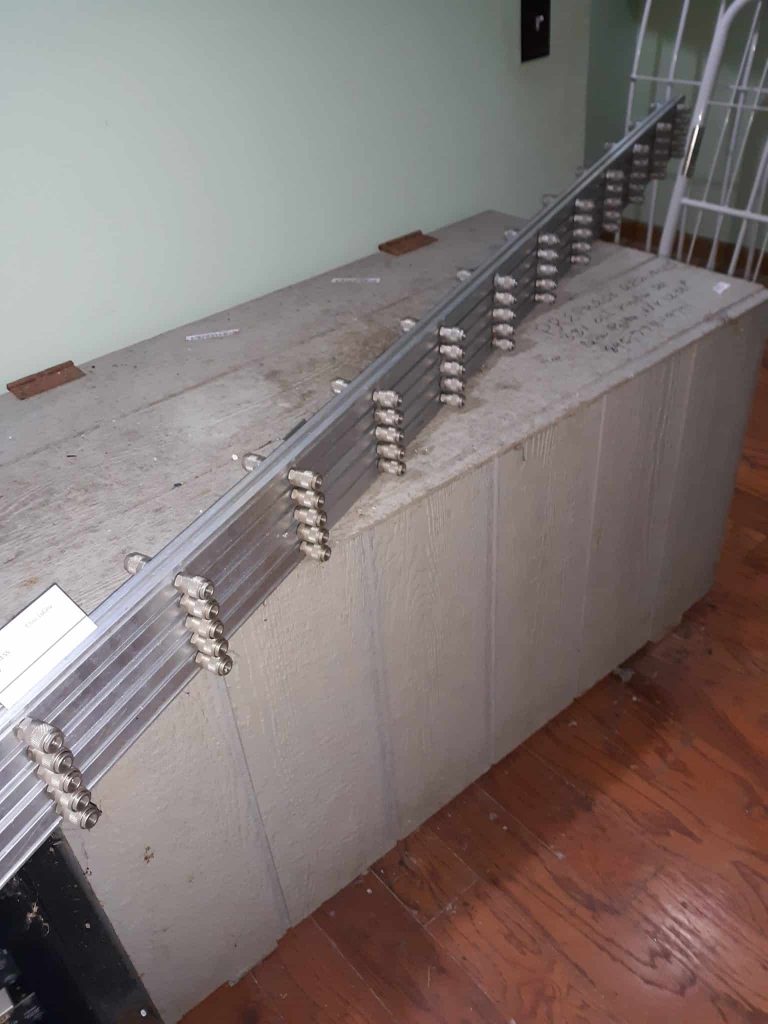 Each clamp, manifold, and control panel has been tested upon arrival at Prepress Resources, Inc. There is virtually no glue or blemishes on the cylinders, housing, or tubing. Although normal working air pressure is between 85-90 psi, all components were tested at 105 psi to ensure all pneumatic components were up to original factory specifications. There were no parts failures in any component of the system. It was previously located in a cleanroom environment for 5 years stretching only 10 screens per week. The previous owner was selling his business and had no more use for the system. I personally flew to MI to crate the system to ensure proper packaging and transportation to NY.